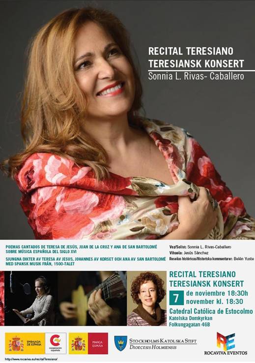 On the occassion of the fifth centenary of the birth of Saint Teresa of Jesus, the Embassy of Spain in Sweden has the pleasure to invite you to the Teresian Concert that will take place at the Catholic Cathedral of Stockholm with the soloist Sonnia L. Rivas-Caballero, the vihuela player Jesús Sánchez, and the presenter Belén Yuste.