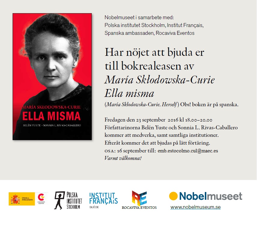 23 september, kl 18-20.00, Nobel Museet, Stortorget, Stockholm